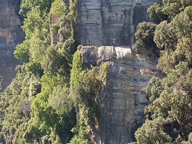 Dans la falaise. Qu’aperçoit-on au dessus ? Tout petit, l'hermitage.
